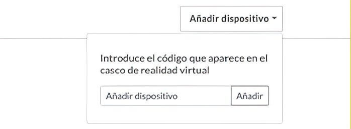 Para sincronizar las gafas de RV con la plataforma, entra el código de 4 dígitos/letras que ves en las gafas y pulsa en Añadir.