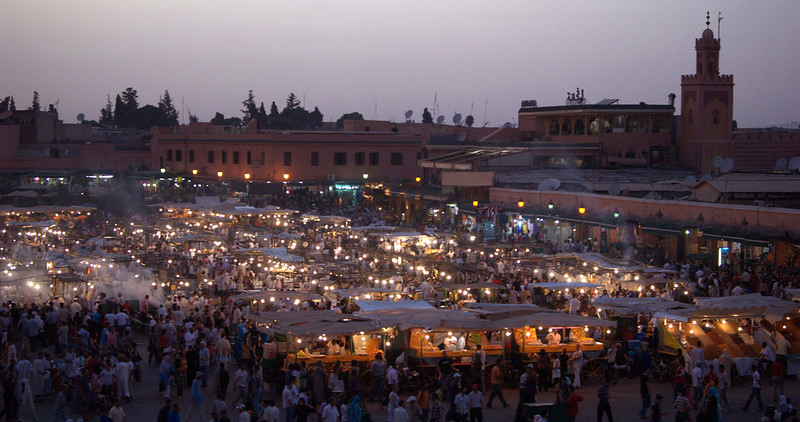 entering a crowded market
