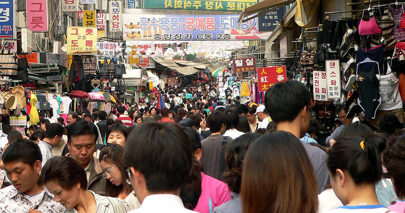 Exposición en vivo yendo a un mercado concurrido o a un centro comercial con bastante gente.