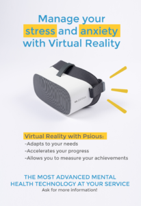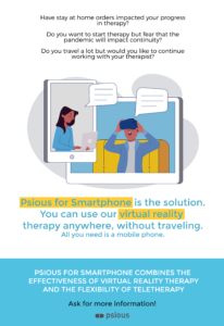 Psico Smart Apps, S.L., has developed an APP, which has a double purpose; firstly, to carry out by Psious professional clients the remote sessions of psychological therapies with their patience, and secondly, the APP users can carry out meditation and relaxation therapies.