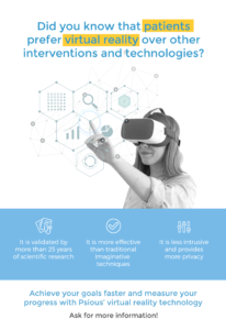 The new high quality visor allows an almost exact visualization of what the patient sees in the Psious App, showing the changes of the configuration variables and environment events in the control page.